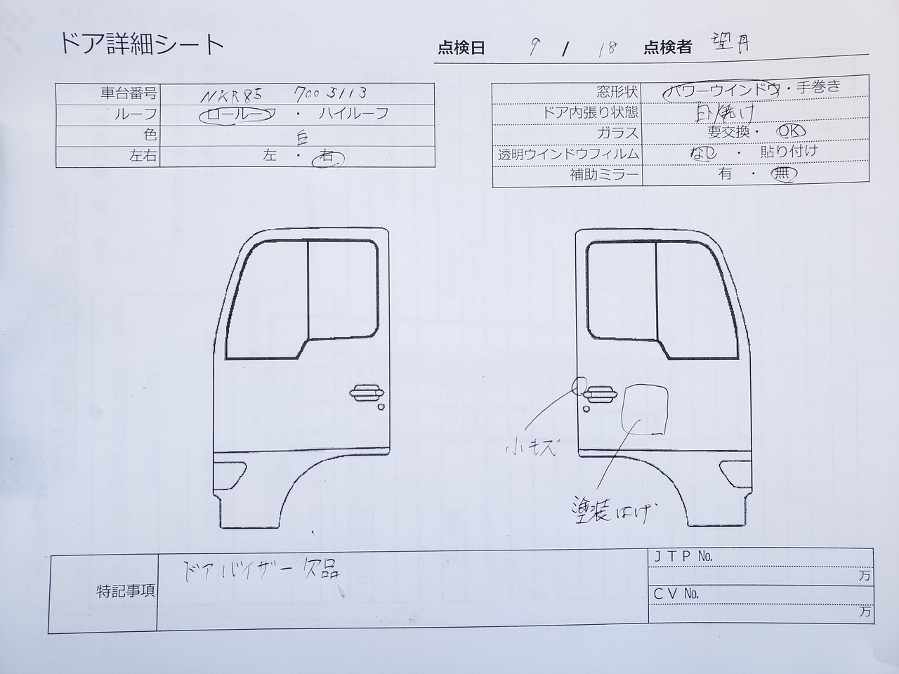 - ドアバイザー欠品