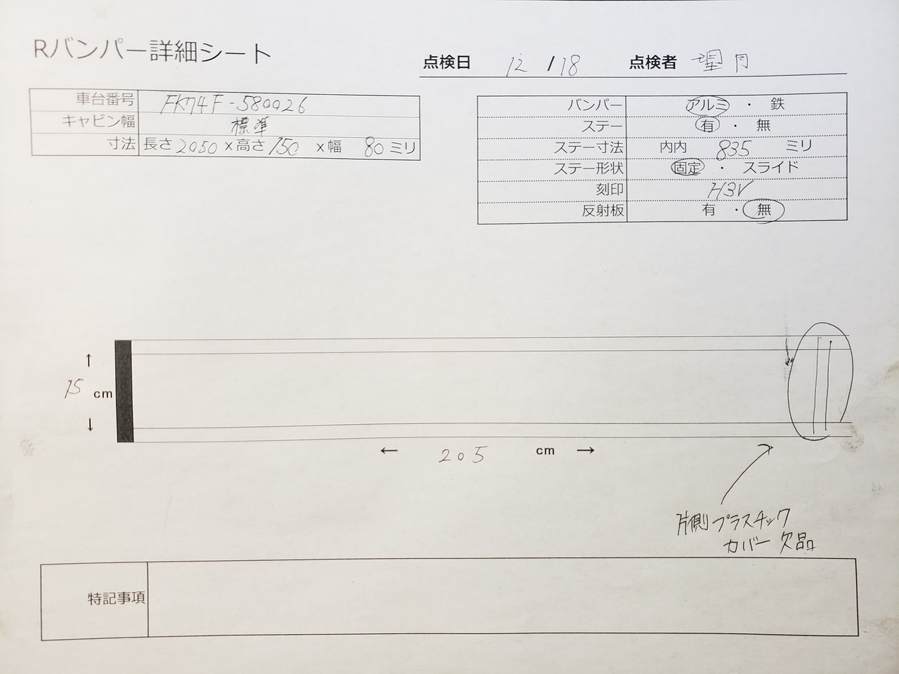 三菱ふそう リアバンパー H25年