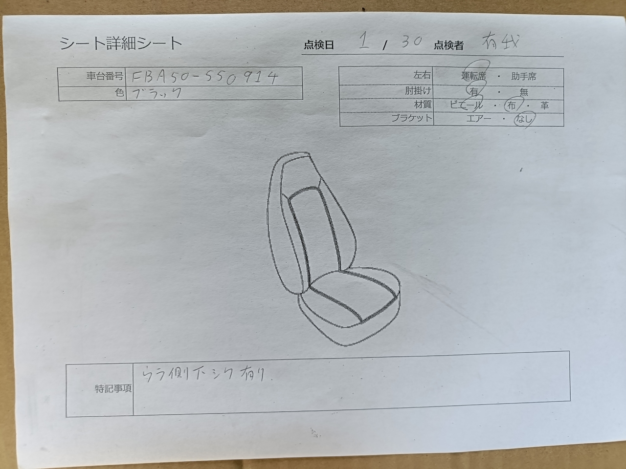 三菱ふそう ドライバーシート H29年