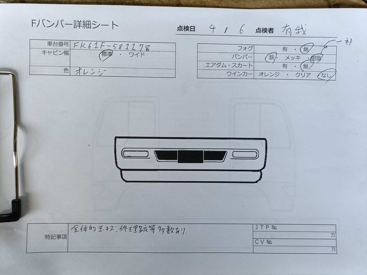 三菱ふそう フロントバンパー H25年