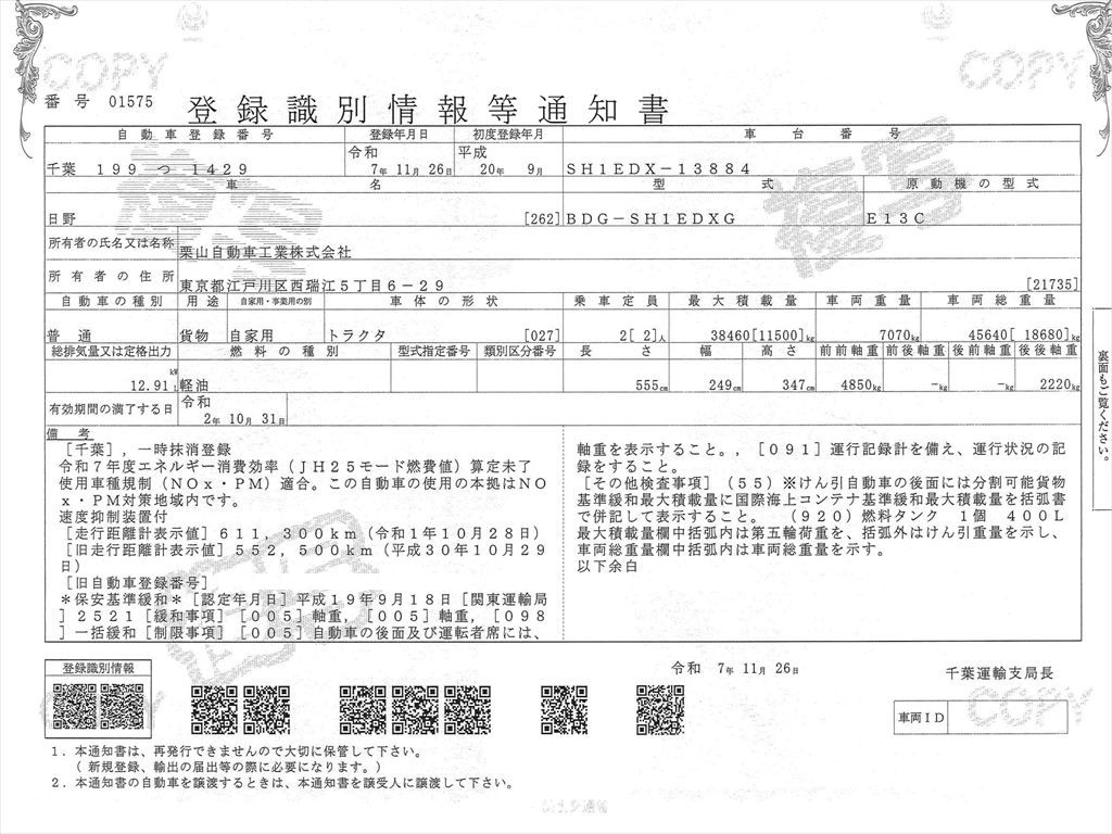 点検前の車両情報です。入庫後、仕様(走行距離など)が変わる場合があります。