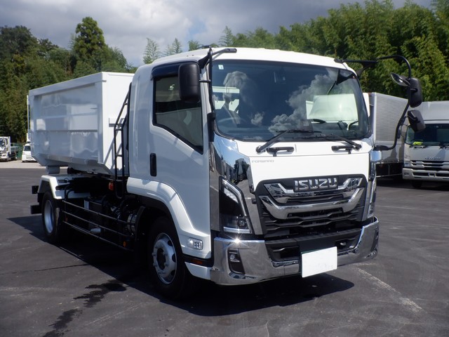【未使用車】 R7年 現行型フォワード 増トン(積載8t) 新明和製アームロール ツインホイスト コンテナ付き 6速マニュアル