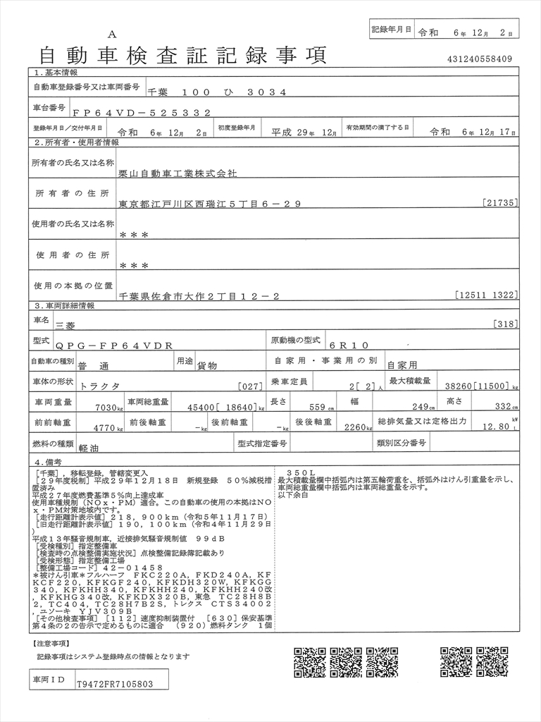 車検証を表示