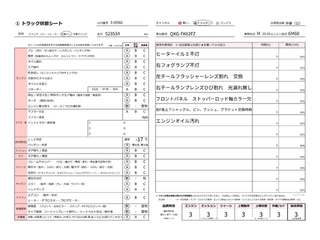 | キャビン | 小傷程度 | きれいな状態 | 多少の傷・凹み | 機能上問題なし | 一定の修理推奨 | 検査基準に該当しない |