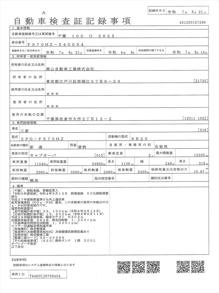 - ●整備記録簿