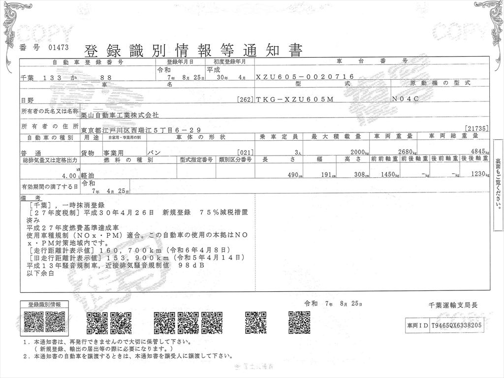 車検証を表示
