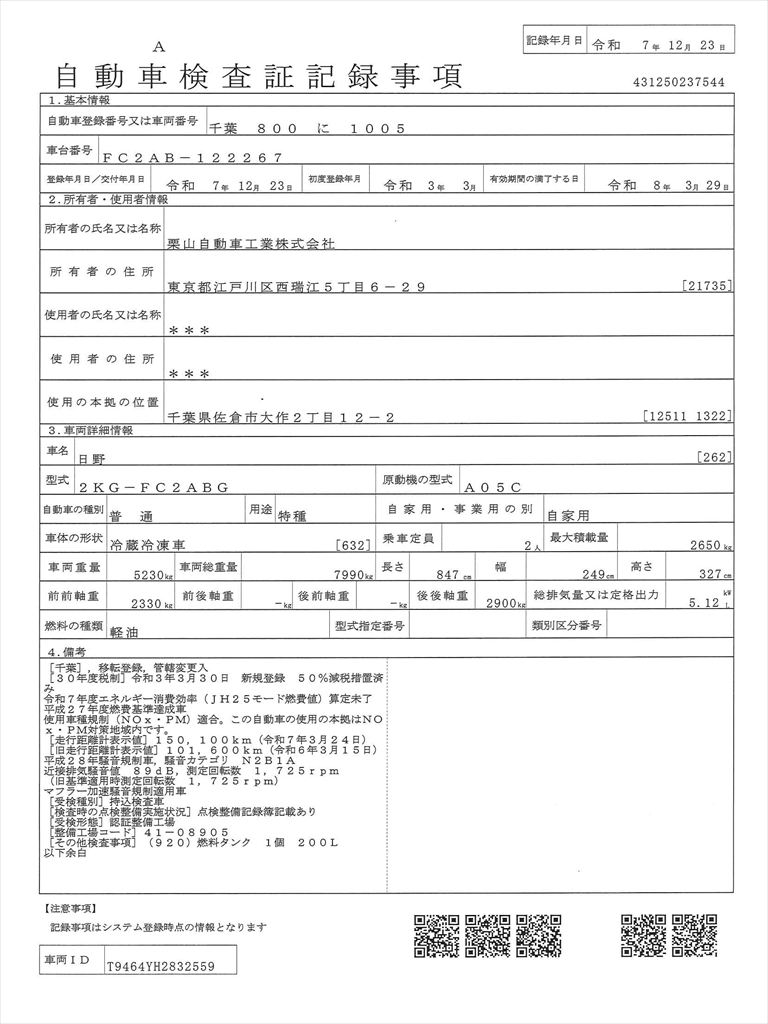 車検証を表示
