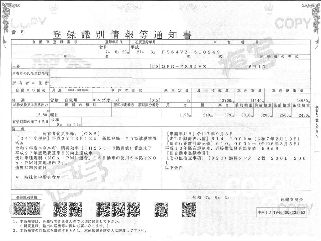 ●走行メーター管理システム検査済