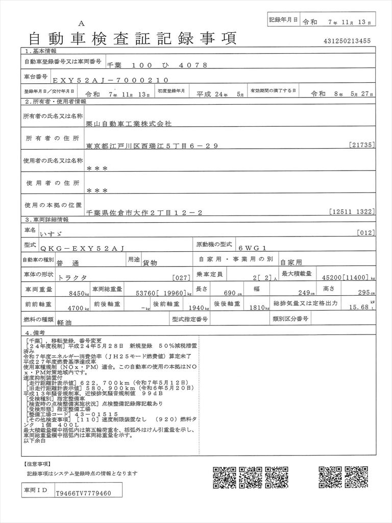お支払いはご契約後1週間以内にお願いしており、車両本体価格の他に諸費用(リサイクル料・自動車税月割り・陸送費など)が別途必要になります2デフギガトラクタヘッド
