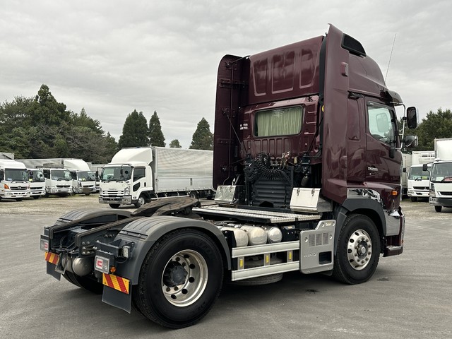 【近日入庫予定】H30年 クオン トラクターヘッド ハイルーフ 480馬力 第五輪荷重11.5t エスコット リアエアサス アルミホイール- 積載