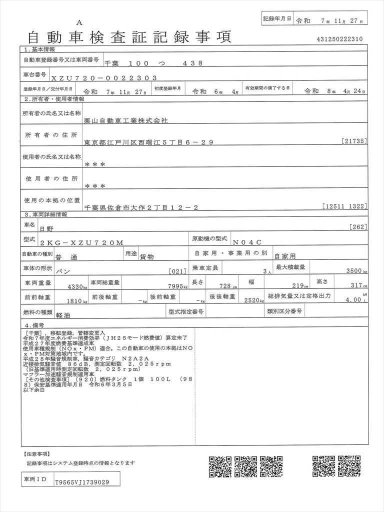 車検証を表示