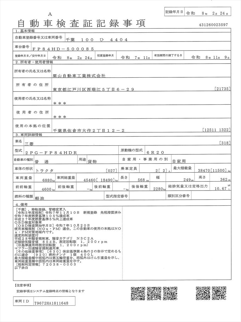 三菱ふそうスーパーグレートの入庫です!