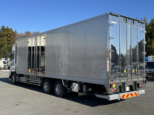【近日入庫予定】【未使用】R7年 ギガ ハイルーフ 3軸2デフ 冷凍バン 3軸2デフ 菱重製直結 -30℃設定 2エバ スタンバイ 格納パワーゲート付 左サイド観音扉 ジョルダー/ジョロダー4列 縞板アルミ床 リアエアサス
