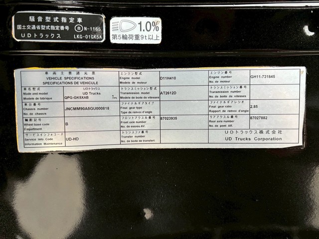 カスタムグレード UDトラックス クオン トラクタヘッド ハイルーフ リアエアサス 積載11トン