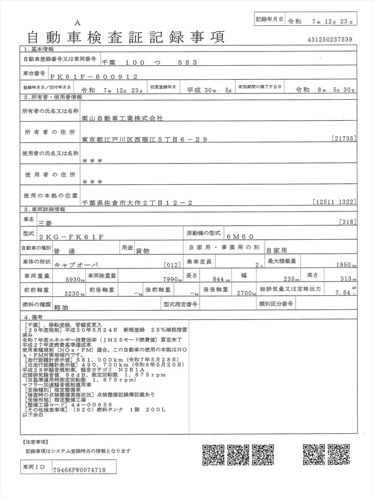 車検証を表示