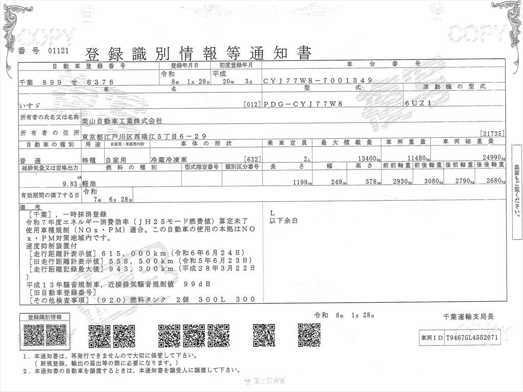 いすゞギガ冷凍ウィング入庫!