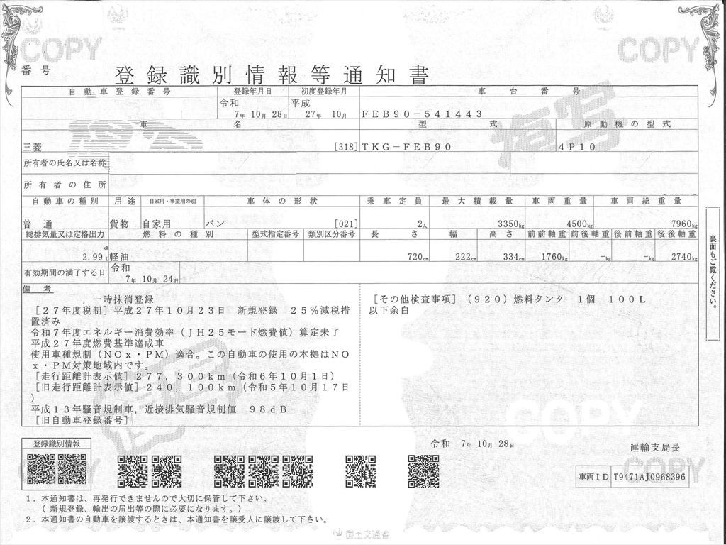 ●走行メーター管理システム検査済