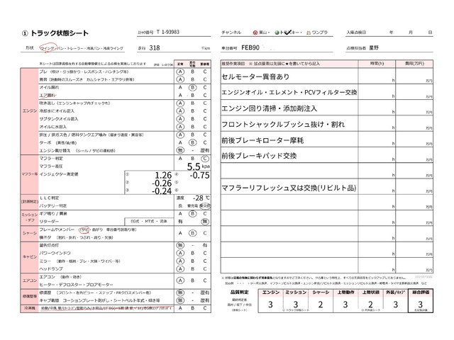 | キャビン | 小傷程度 | きれいな状態 | 多少の傷・凹み | 機能上問題なし | 一定の修理推奨 | 検査基準に該当しない |