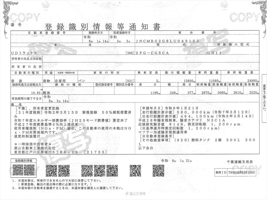 UDトラックスクオンの入庫です!