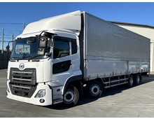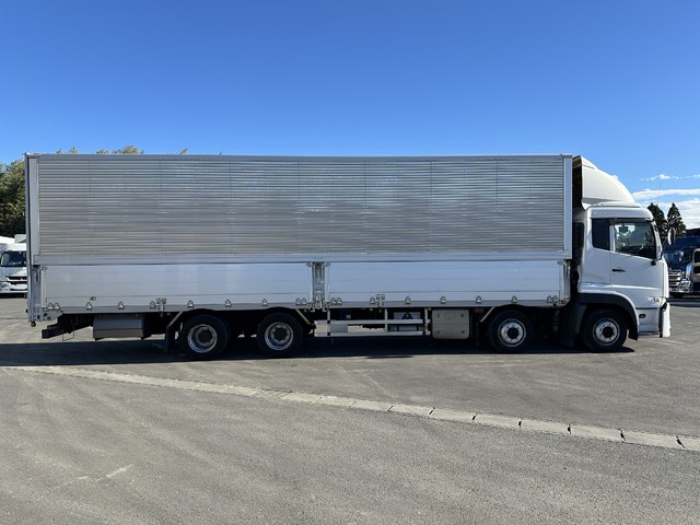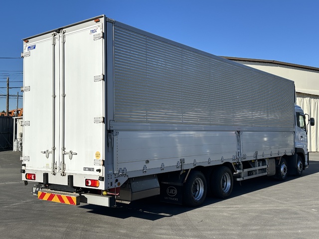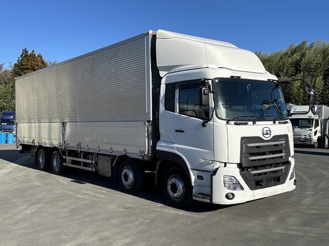 【近日入庫予定】 H30年 低床4軸 アルミウイング 内高265㎝ リアエアサス トレクス ステンレスパーツ多数 日産UD クオン- 積載