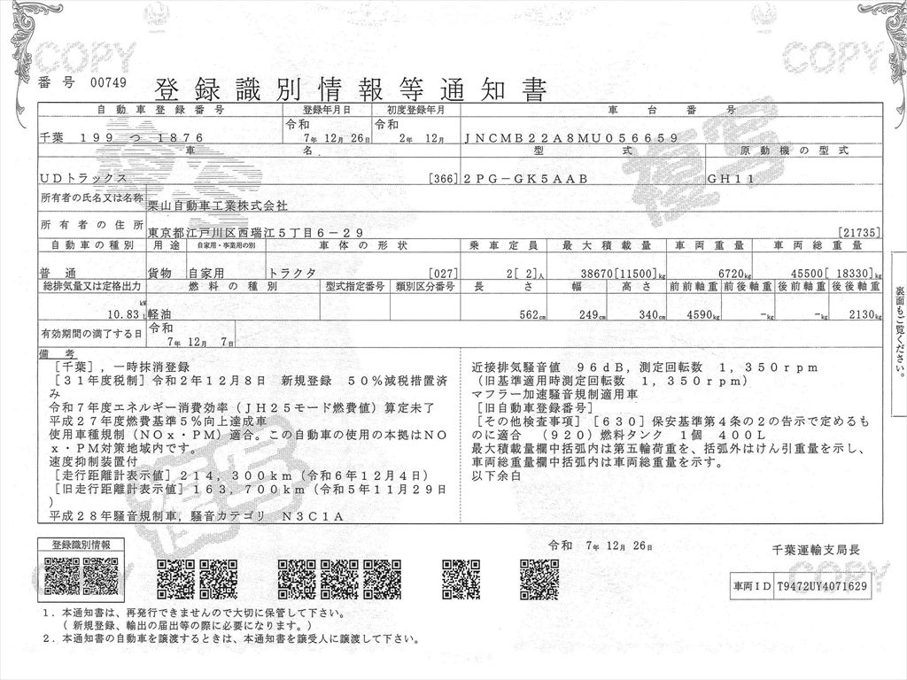 UDクオントラクターヘッドの入庫です!