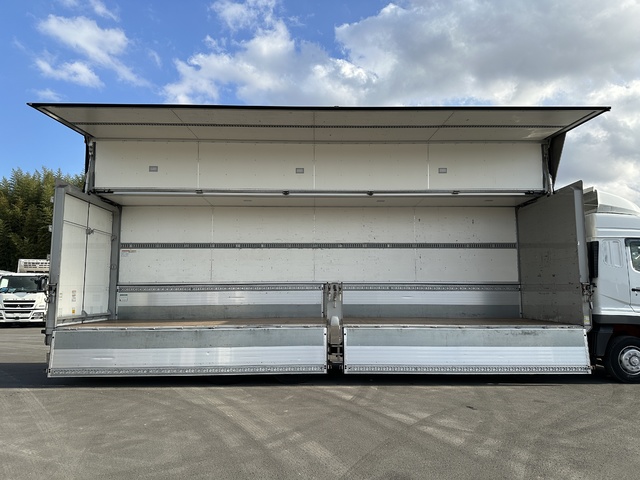 【近日入庫予定】 17スーパーグレート 4軸2デフ フルハーフ製アルミウイング 床鉄板 13.1トン積載 リアエアサス- 積載