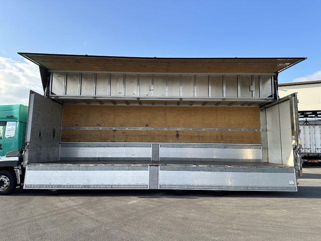 【近日入庫予定】 17スーパーグレート 4軸2デフ フルハーフ製アルミウイング 床鉄板 13.1トン積載 リアエアサス- 積載