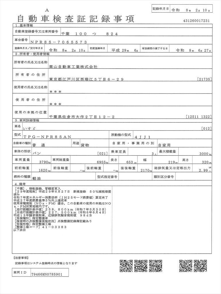 車検証を表示