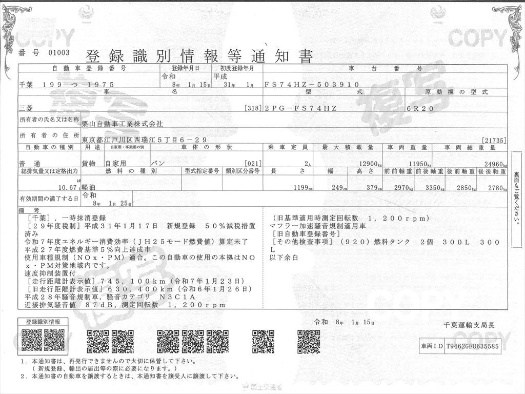 三菱ふそうスーパーグレートの入庫です