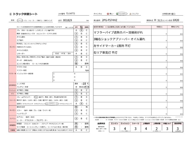 | キャビン | 小傷程度 | きれいな状態 | 多少の傷・凹み | 機能上問題なし | 一定の修理推奨 | 検査基準に該当しない |