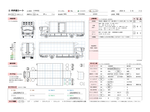 | キャビン | 小傷程度 | きれいな状態 | 多少の傷・凹み | 機能上問題なし | 一定の修理推奨 | 検査基準に該当しない |
