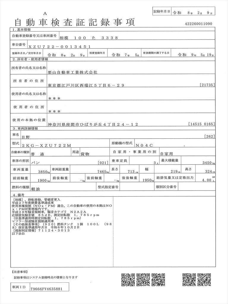 ●走行メーター管理システム検査済