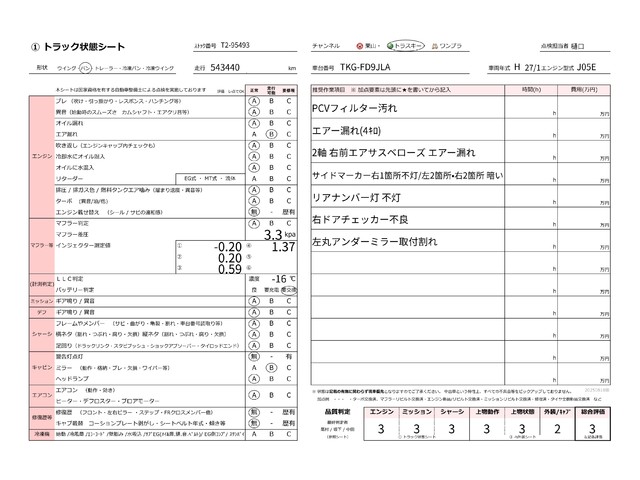 | キャビン | 小傷程度 | きれいな状態 | 多少の傷・凹み | 機能上問題なし | 一定の修理推奨 | 検査基準に該当しない |