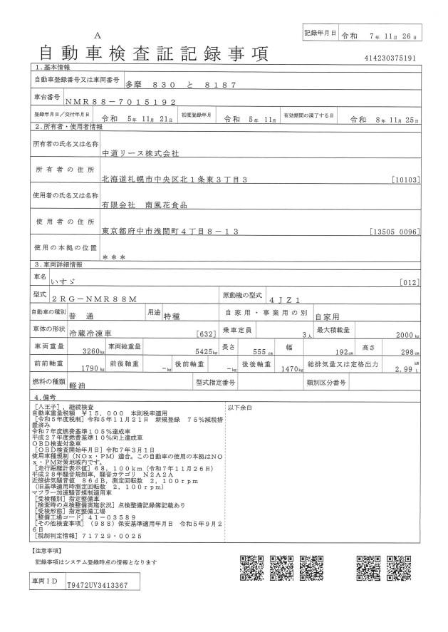 車検証を表示