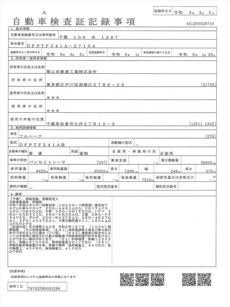 フルハーフ製3軸ウィングセミトレーラーの入庫です!