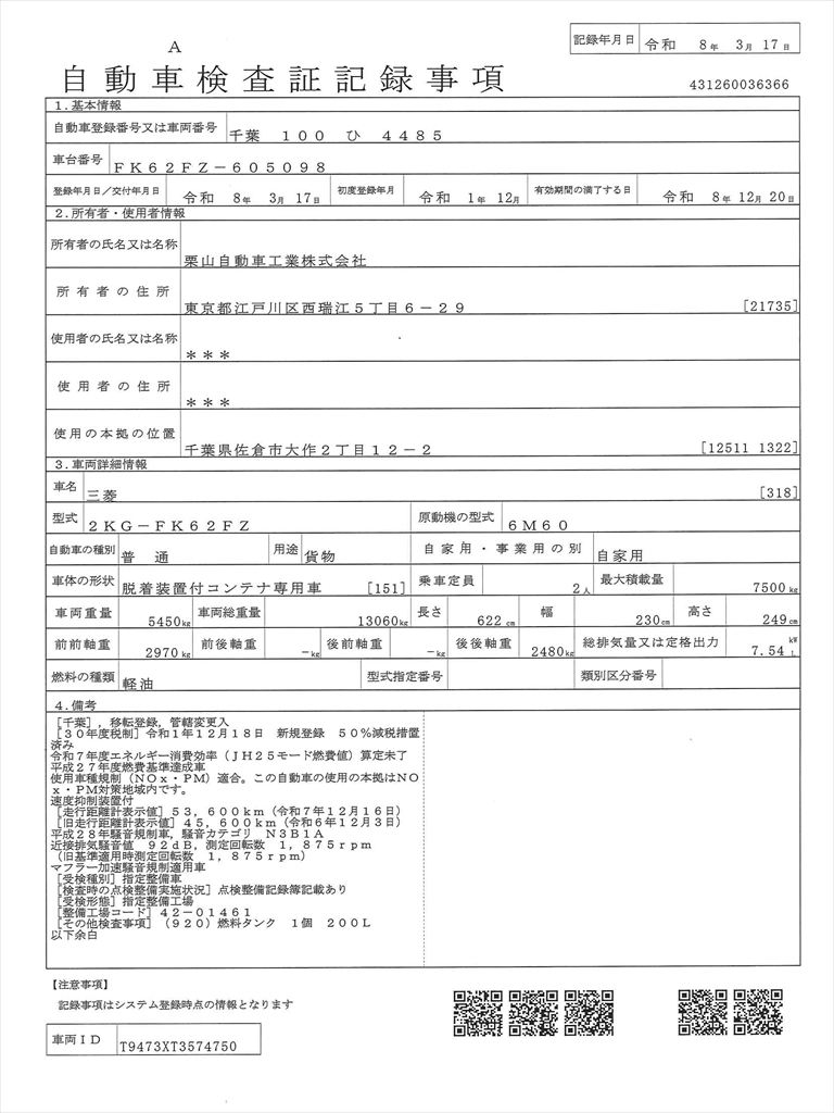 | シャーシ | 良好な状態 | 目立つサビ・腐食なし | 経年劣化程度 | 日常使用は可能と判断 | サビ大や歪み有 | 補強等要す |