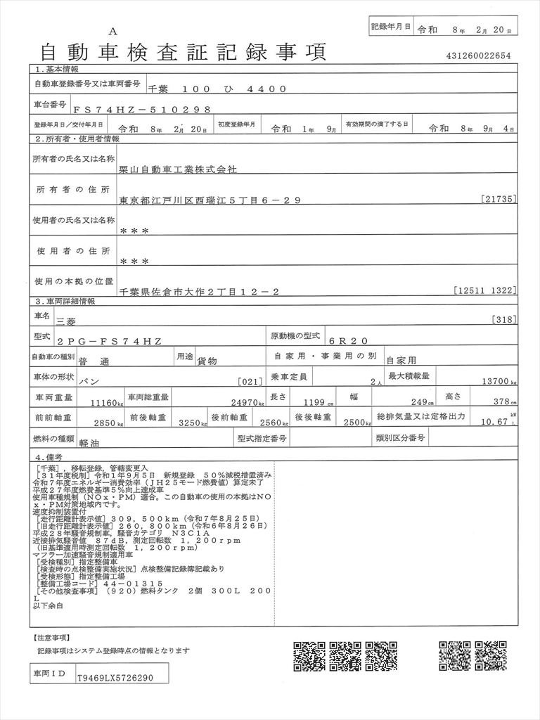 ●走行メーター管理システム検査済
