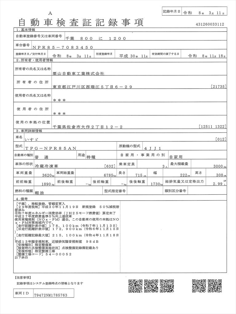 車検証を表示
