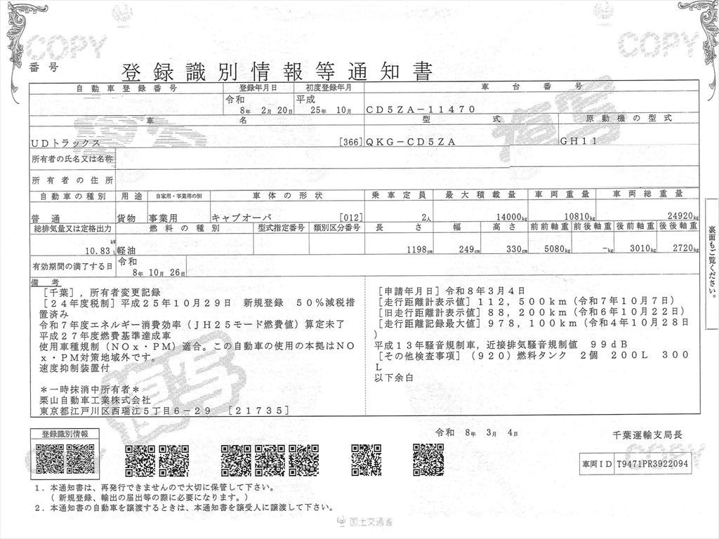 ★最大積載量14000㎏ 車輌総重量24920㎏
