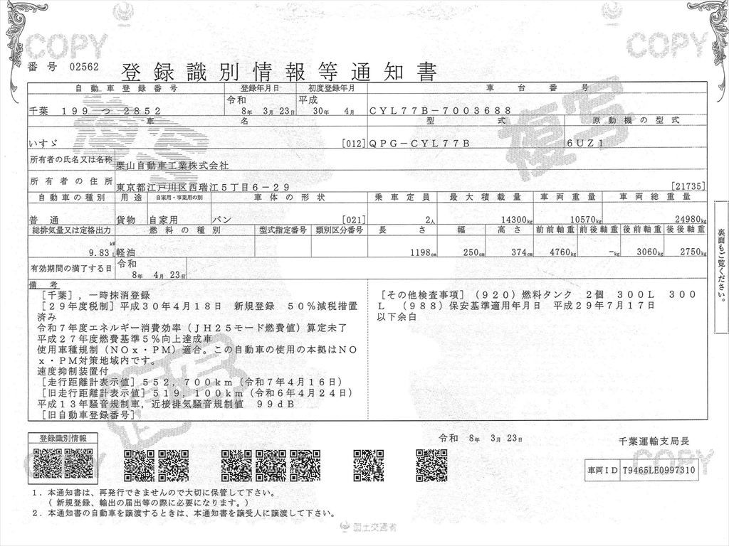 車検証を表示