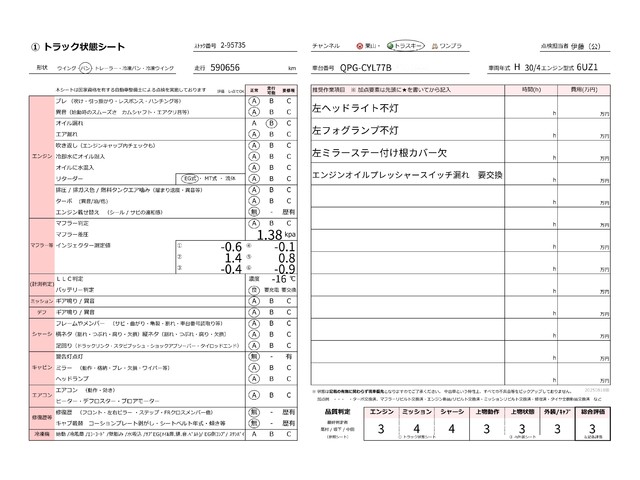 | キャビン | 小傷程度 | きれいな状態 | 多少の傷・凹み | 機能上問題なし | 一定の修理推奨 | 検査基準に該当しない |