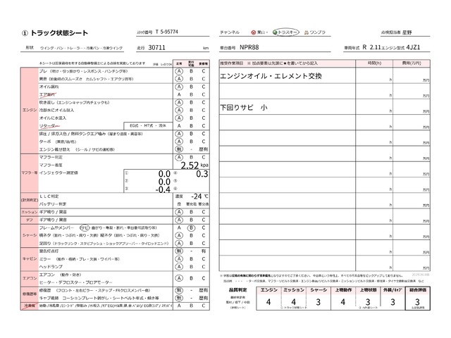 | シャーシ | 良好な状態 | 目立つサビ・腐食なし | 経年劣化程度 | 日常使用は可能と判断 | サビ大や歪み有 | 補強等要す |