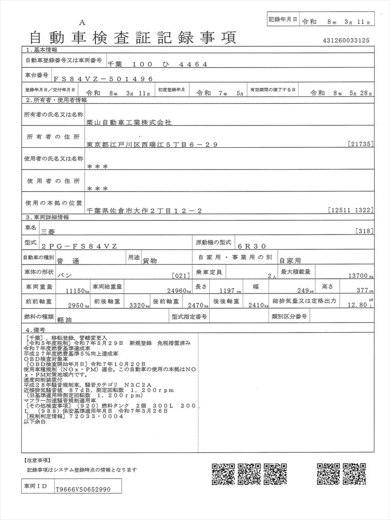 三菱ふそうスーパーグレートの入庫です