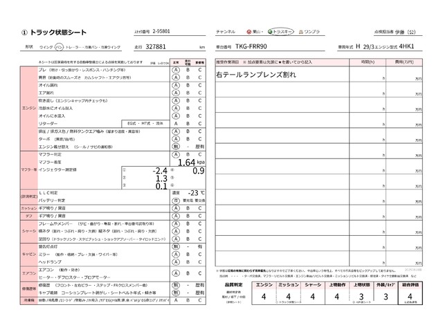 | キャビン | 小傷程度 | きれいな状態 | 多少の傷・凹み | 機能上問題なし | 一定の修理推奨 | 検査基準に該当しない |