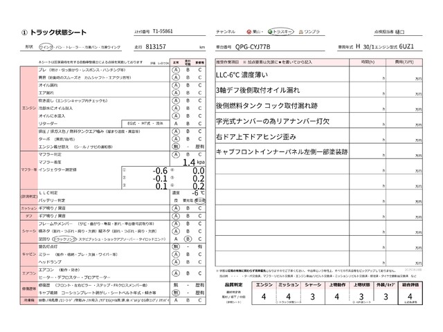 | キャビン | 小傷程度 | きれいな状態 | 多少の傷・凹み | 機能上問題なし | 一定の修理推奨 | 検査基準に該当しない |