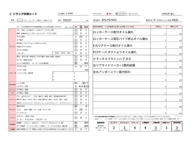 | ミッション | 新車の状態に近い | 良好な状態 | 目立った問題点がない | 日常使用は可能と判断 | 使用上、修理推奨 | 使用上、修理必須 |