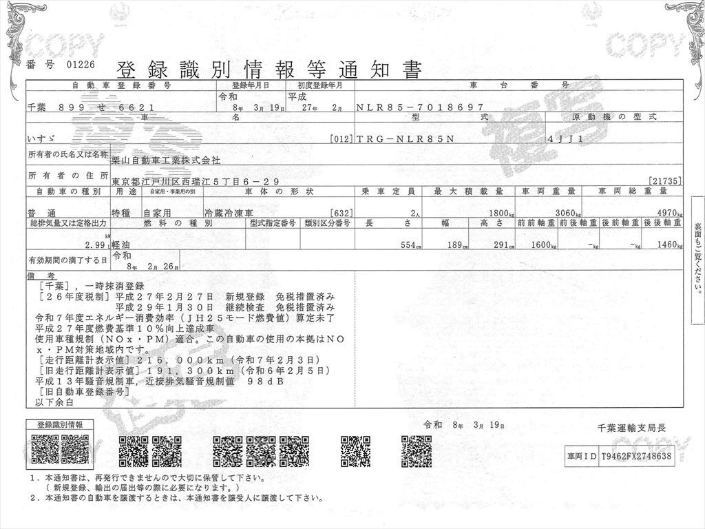 車検証を表示