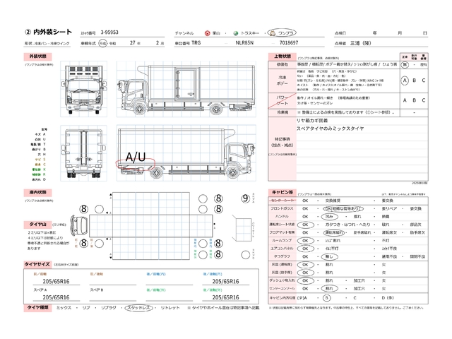 | キャビン | 小傷程度 | きれいな状態 | 多少の傷・凹み | 機能上問題なし | 一定の修理推奨 | 検査基準に該当しない |