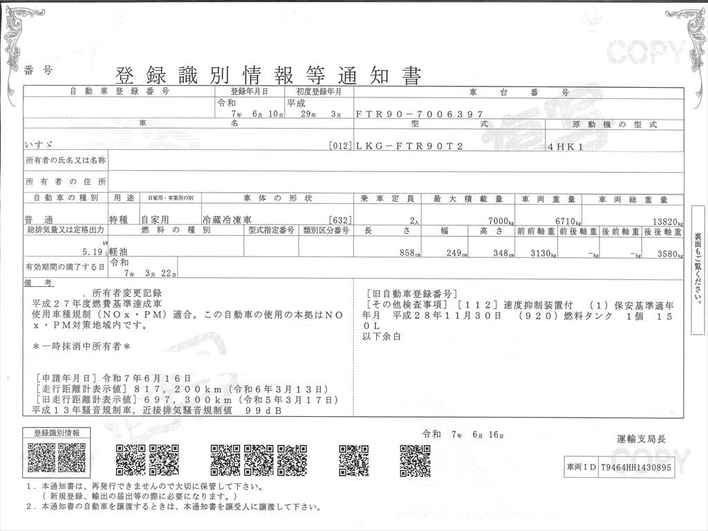増トン車!積載7tと大容量!【新規車検時減トンの可能性あり】