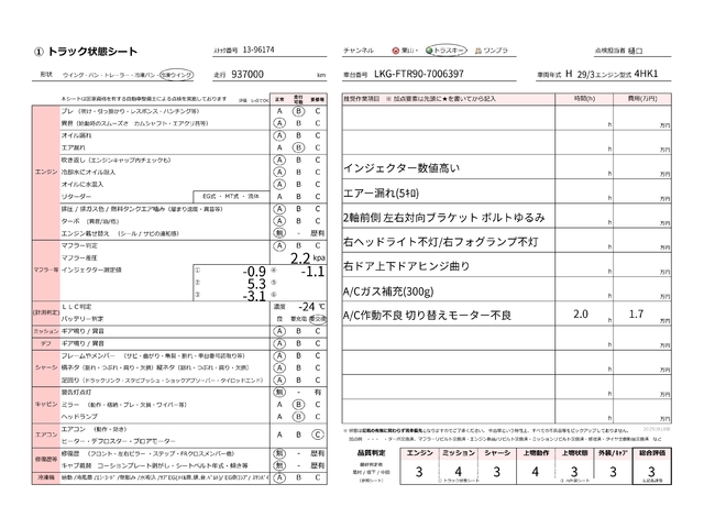 | キャビン | 小傷程度 | きれいな状態 | 多少の傷・凹み | 機能上問題なし | 一定の修理推奨 | 検査基準に該当しない |